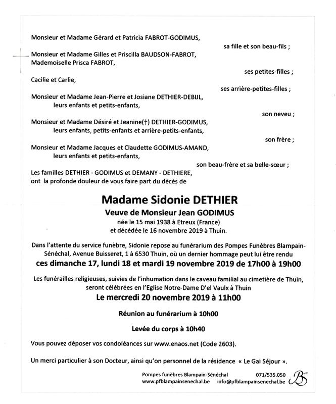 Décédée à Thuin (6530) le samedi 16 novembre 2019 à l'âge de 81 ans