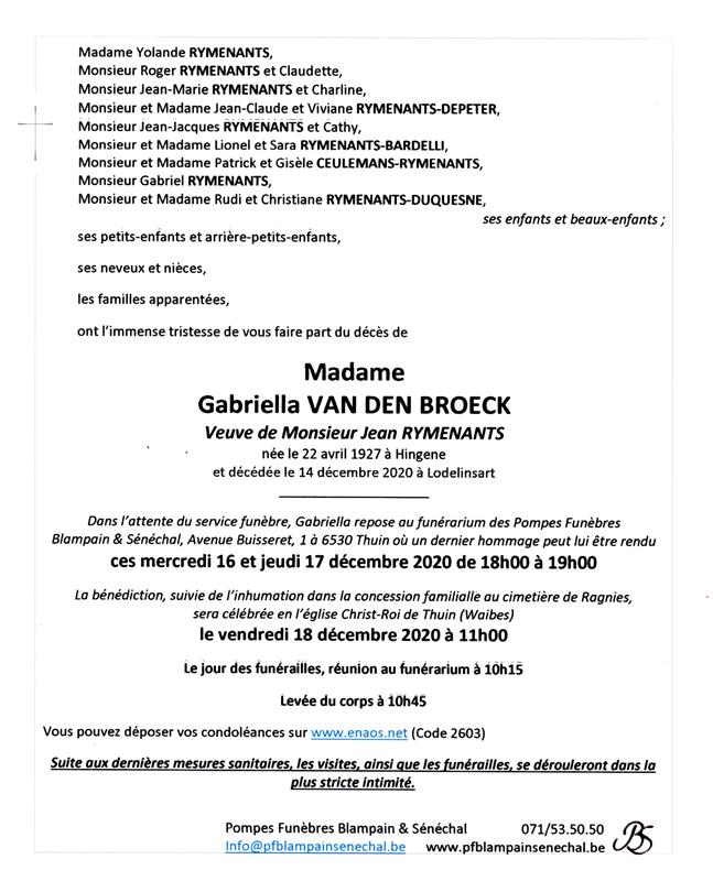 Décédée à Lodelinsart (6042) le lundi 14 décembre 2020 à l'âge de 93 ans