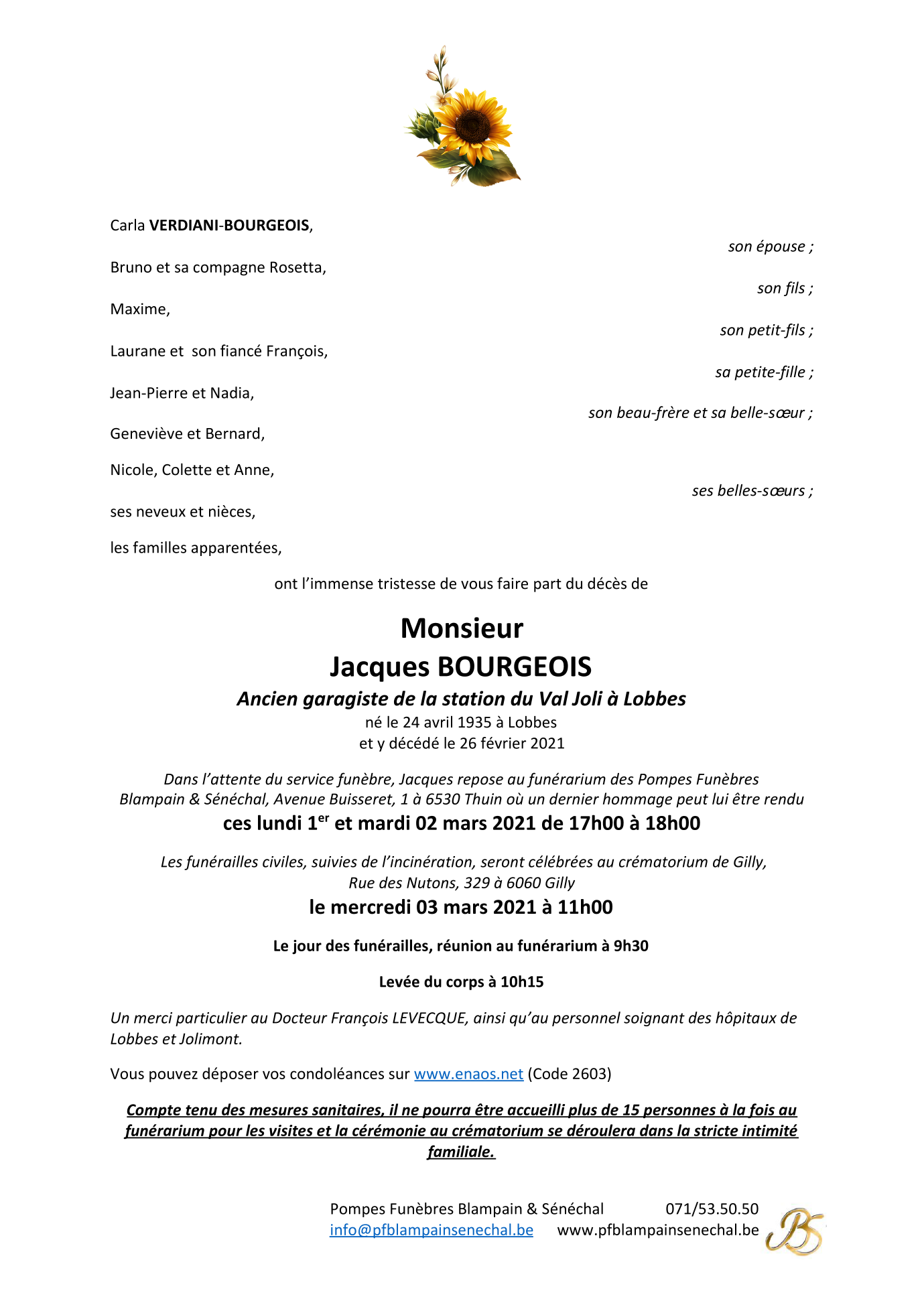 Décédé à Lobbes (6540) le vendredi 26 février 2021 à l'âge de 85 ans