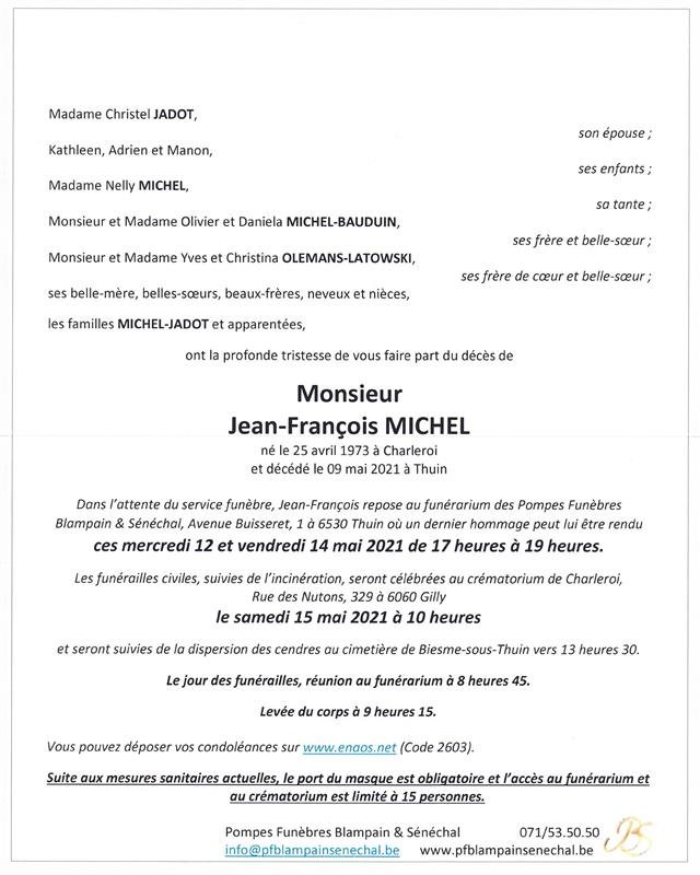 Décédé à Thuin (6530) le dimanche 9 mai 2021 à l'âge de 48 ans