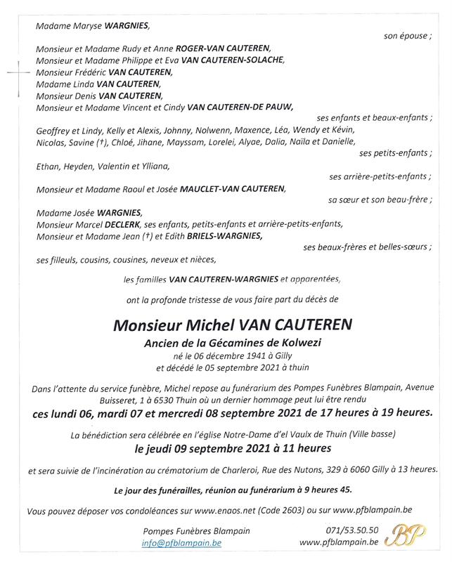 Décédé à Thuin (6530) le dimanche 5 septembre 2021 à l'âge de 79 ans