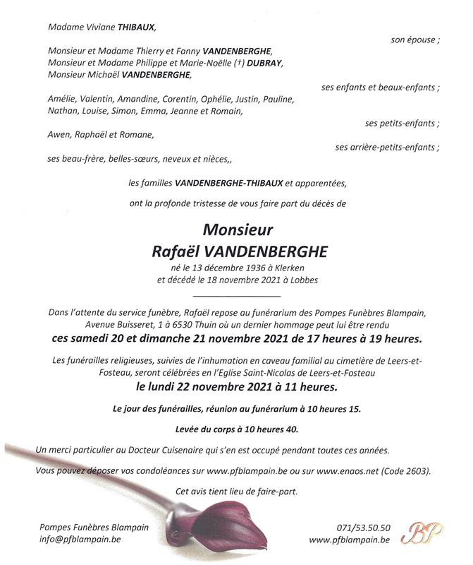 Décédé à Lobbes (6540) le jeudi 18 novembre 2021 à l'âge de 84 ans
