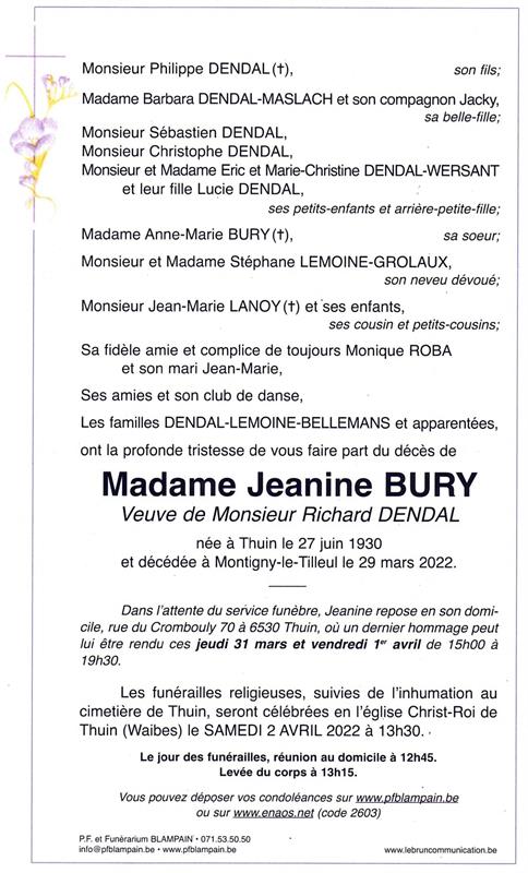 Décédée à Montigny-le-Tilleul (6110) le mardi 29 mars 2022 à l'âge de 91 ans