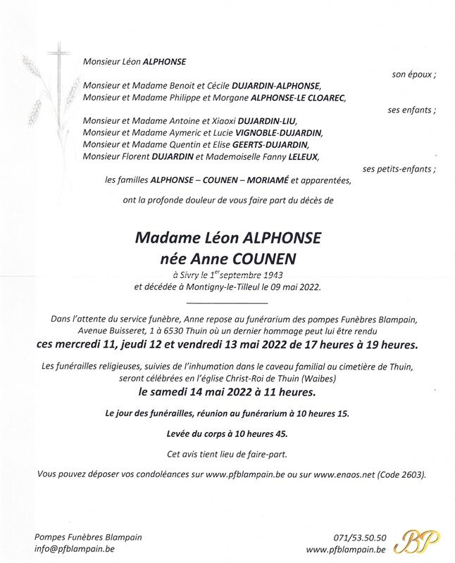 Décédée à Montigny-le-Tilleul (6110) le lundi 9 mai 2022 à l'âge de 78 ans