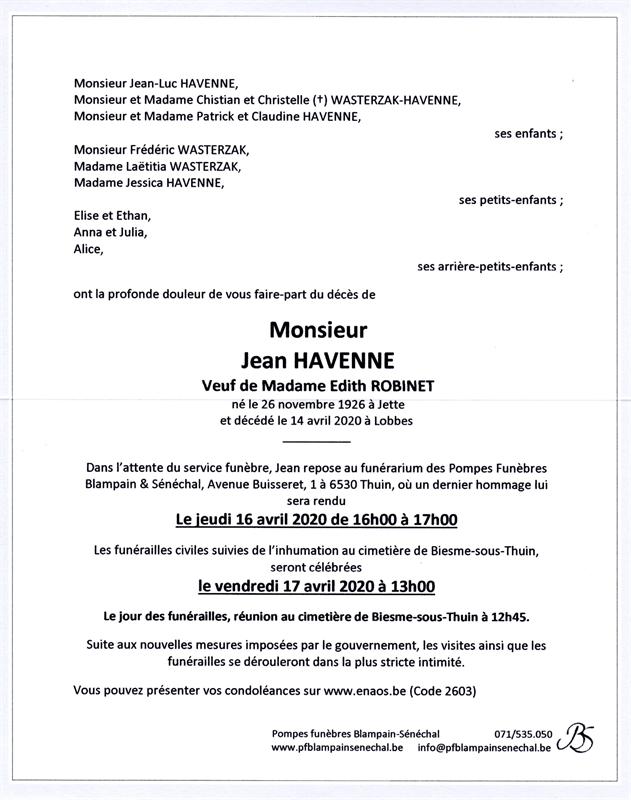 Décédé à Lobbes (6540) le mardi 14 avril 2020 à l'âge de 93 ans