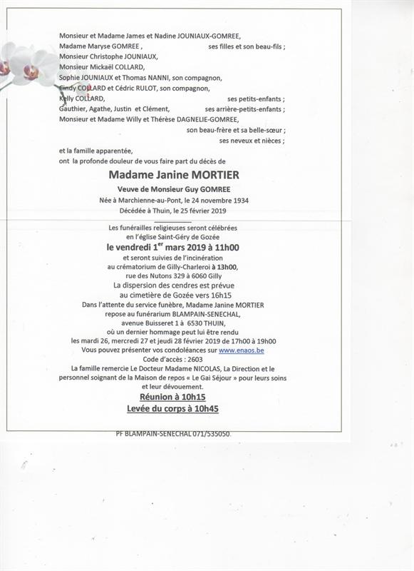 Décédée à Thuin (6530) le lundi 25 février 2019 à l'âge de 84 ans