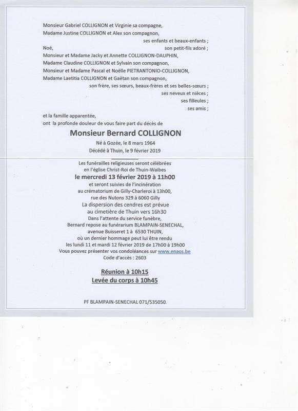 Décédé à Thuin (6530) le samedi 9 février 2019 à l'âge de 54 ans